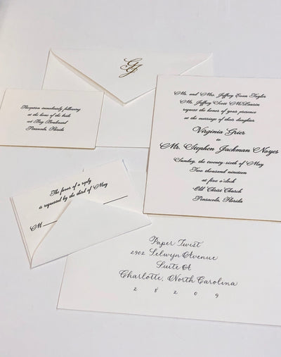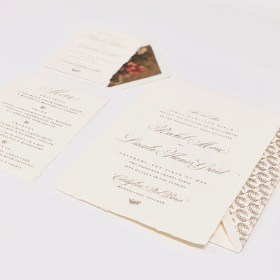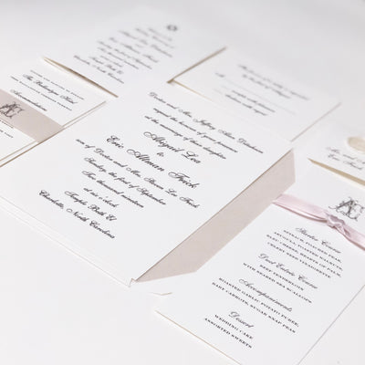 We will work hand in hand with you and your wedding planner to create beautiful wedding papers that speak to the brand of your event. Each event we create is custom and very special to us. We start the design process eight to nine months before the event for save the dates and wedding papers. If you are starting with the wedding invitation suite only, we recommend starting your design process five to six months prior to the wedding date. Our team will create a custom timeline for your event and serve a partner for the planning of your wedding papers.